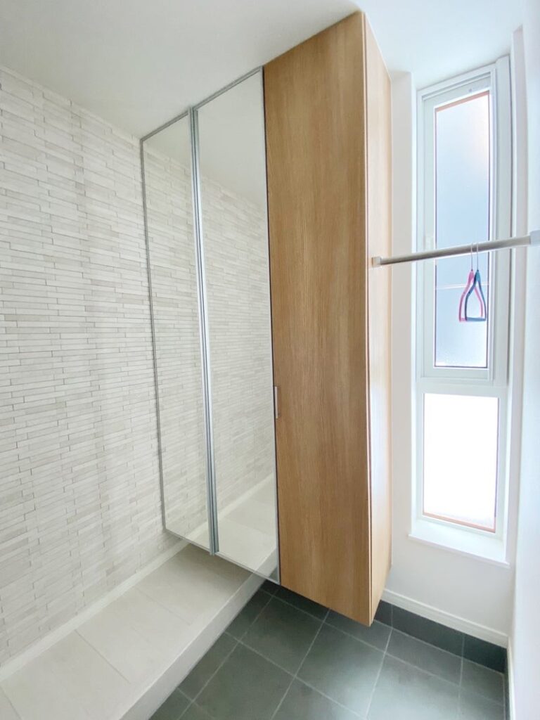玄関には大きめの鏡を2面設置しました。