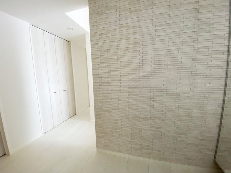玄関の壁にはホワイト系のエコカラットを採用しました。